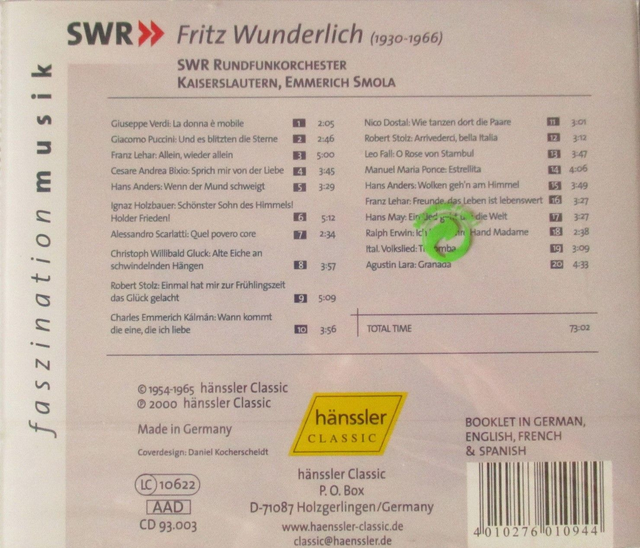 FRITZ WUNDERLICH Historical Recording 1954-1965 CD