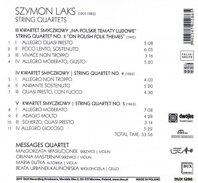 III Kwartet smyczkowy/IV Kwartet smyczkowy/V Kwartet smyczkowy Messages Quartet
